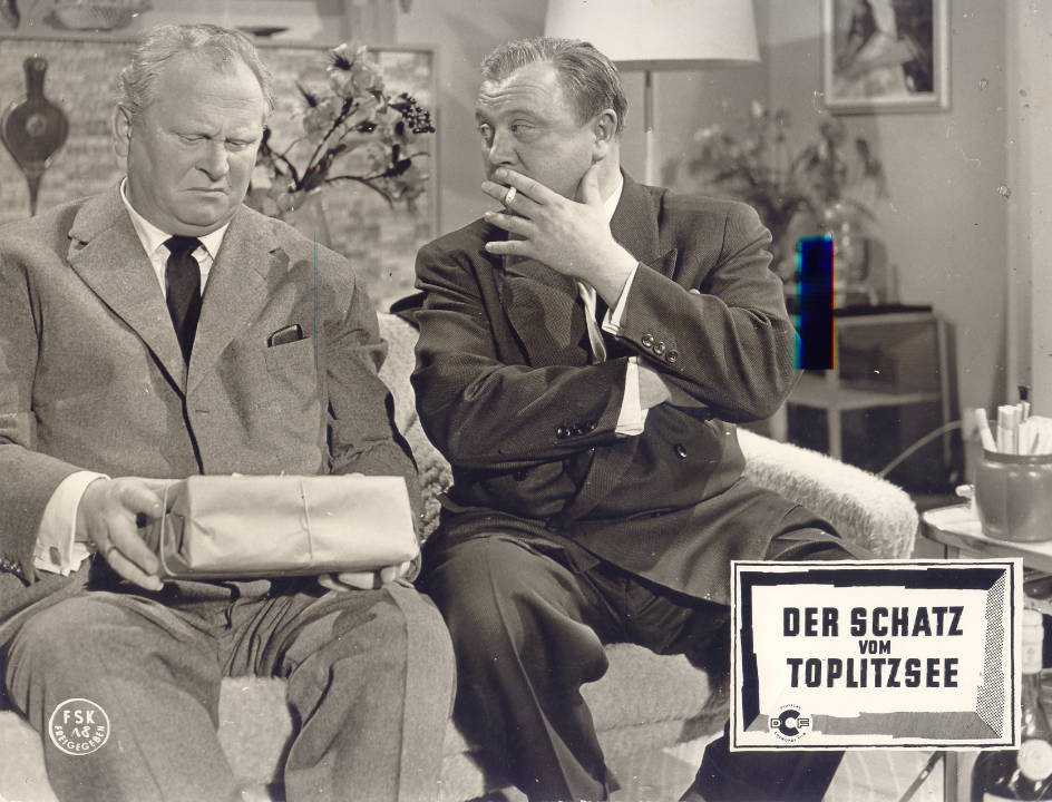 Im Jahr 1959 hatte Stern-Reporter Wolfgang Löhde im Toplitzsee aus 80 Metern Tiefe 17 Kisten voll gefälschter Pfundnoten und zwei Kisten mit Dokumenten geborgen, die im Rahmen der Aktion Bernhard hergestellt und in den letzten Kriegstagen von einem SS-Kommando hier versenkt worden waren. Regisseur Franz Antel beschloss, dies zu verfilmen und arbeitete während der Dreharbeiten eng mit Löhde zusammen. Da der Film wenig erfolgreich war, wagte sich Antel in der Folge an kein ähnliches Projekt mehr. – Wikipedia / Franz Antel: Verdreht, verliebt, mein Leben, München, Wien 2001, S. 130 ff.